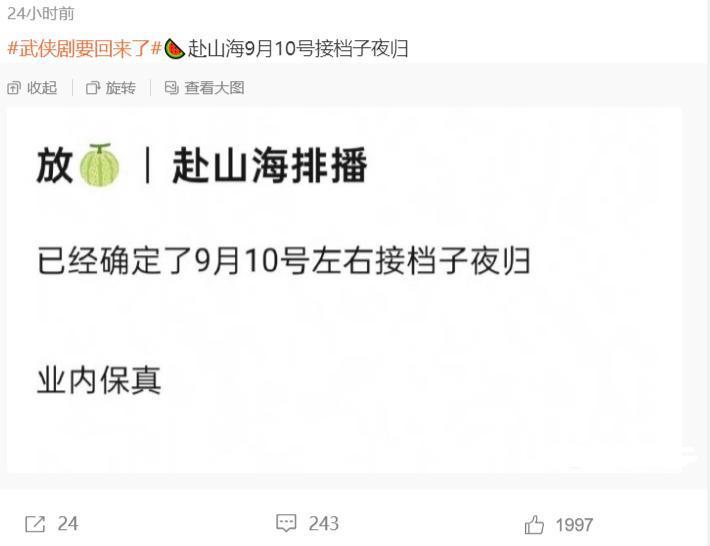 《赴山海》绝对有望成为爆剧,根据知情人士透露,这部剧很有可能会和《凡人修仙传》对打,《凡人修仙传》是杨洋主演的古装仙侠剧,如果这两部剧真的可以同期播出,热度一定会非常高。